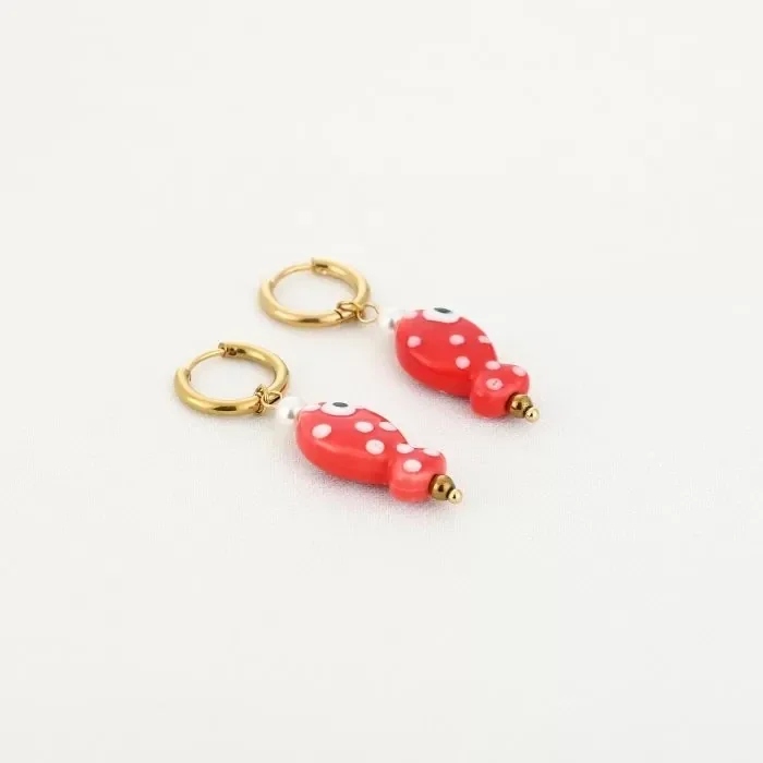 Bedel oorbellen visje rood